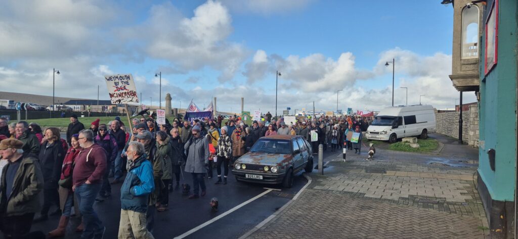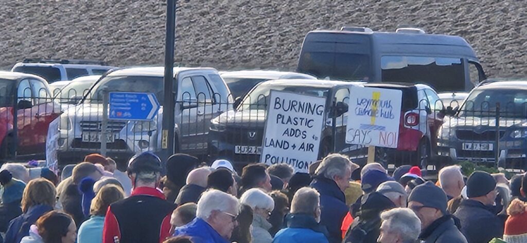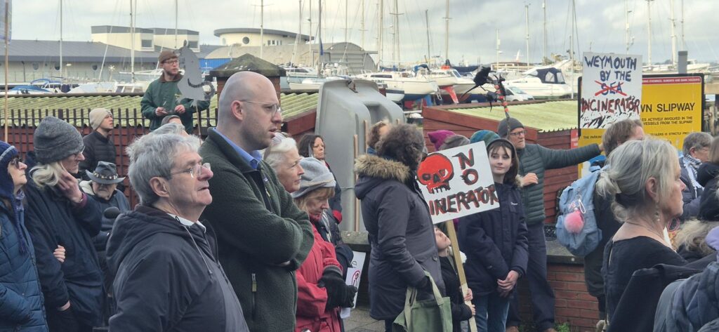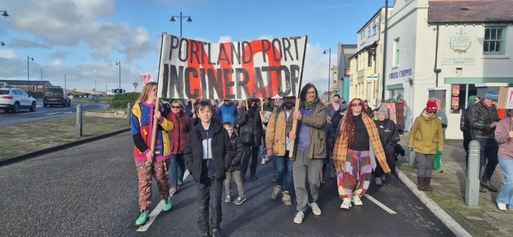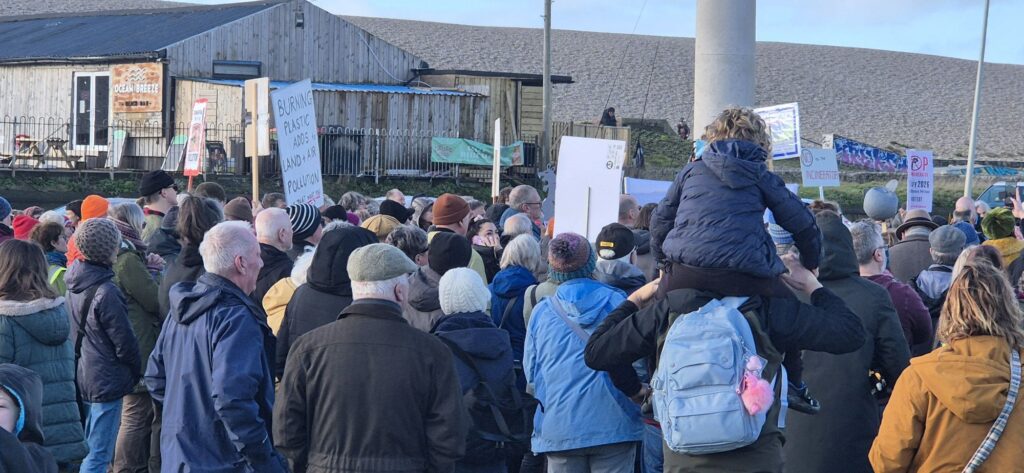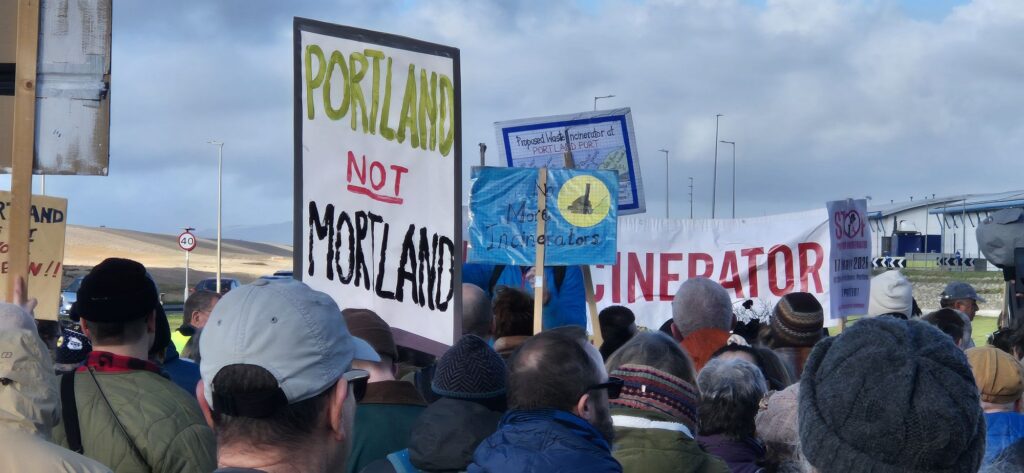 Protesters filled the square with banners, placards and chants calling for the proposed incinerator project to be halted, citing concerns over air quality, public health, and environmental impact on the local community and coastline. Families, local residents, environmental campaigners and representatives from community groups were among those in attendance, creating a visibly large and vocal presence on Portland.