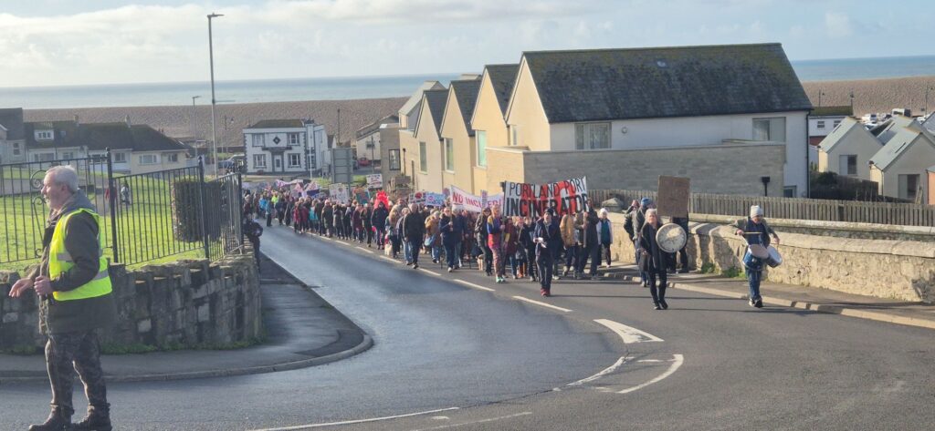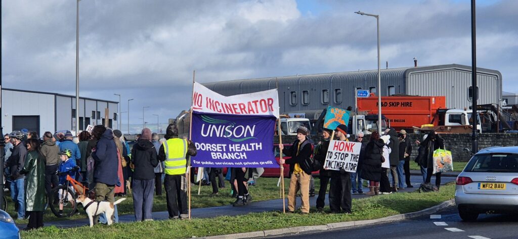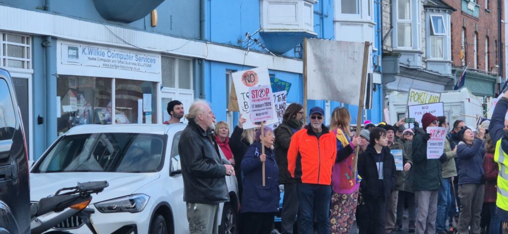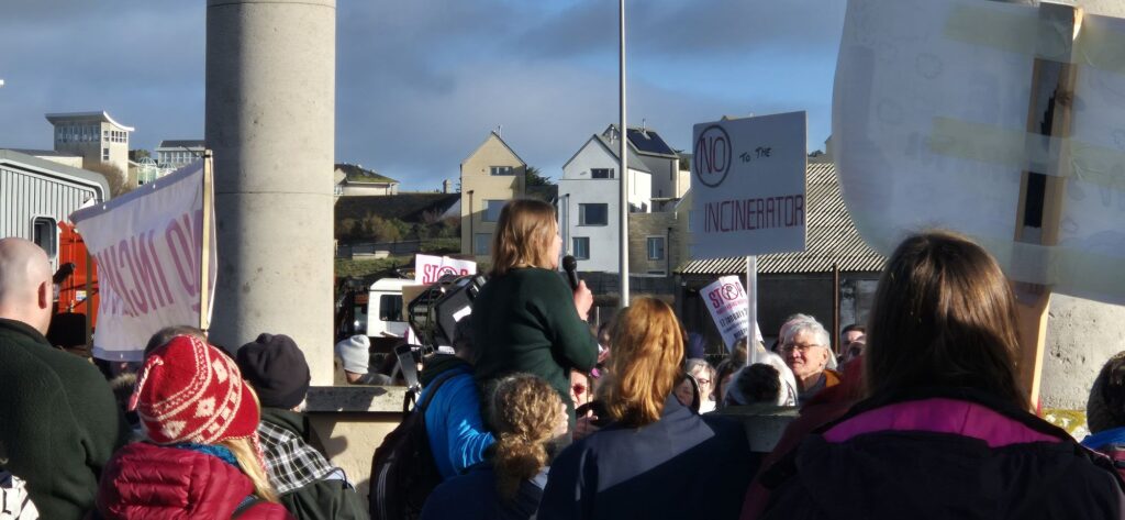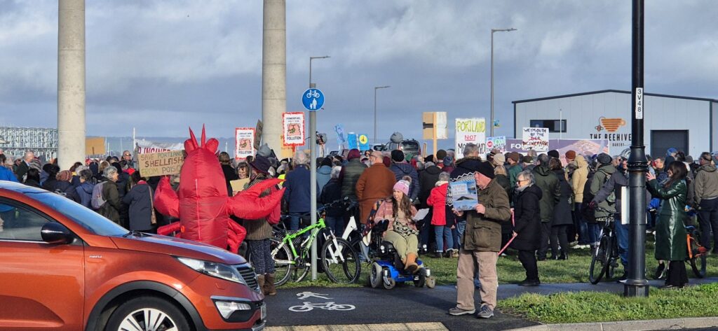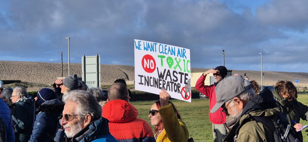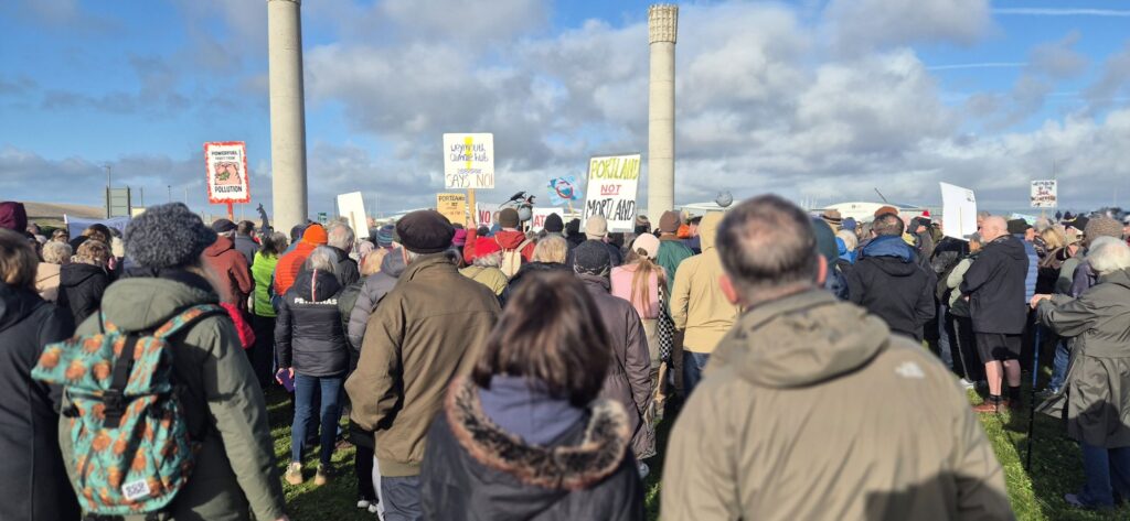 Protesters filled the square with banners, placards and chants calling for the proposed incinerator project to be halted, citing concerns over air quality, public health, and environmental impact on the local community and coastline. Families, local residents, environmental campaigners and representatives from community groups were among those in attendance, creating a visibly large and vocal presence on Portland.